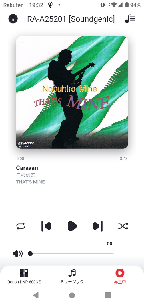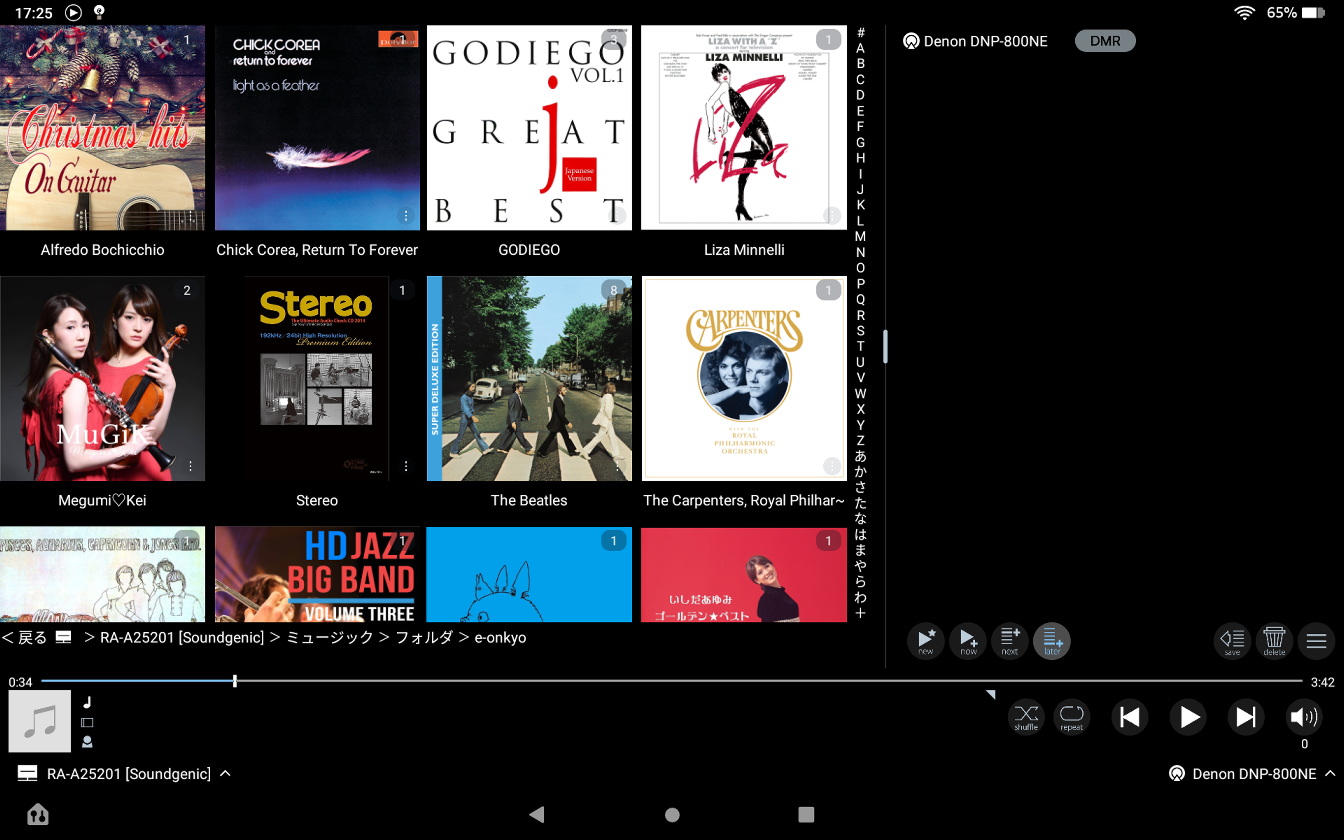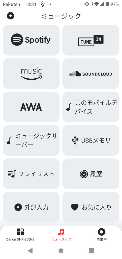 fidataの画面(HEOSのアカウントでトラブルがあり、一時的にfidataに変更・HEOSの方がシンプルで好きだけど・・・。 トラブルの原因はHEOSサーバーの障害でした。fidataはアイコンなどが小さすぎてFire HD 10でも使いにくく、シンプルなHEOSに戻しました。