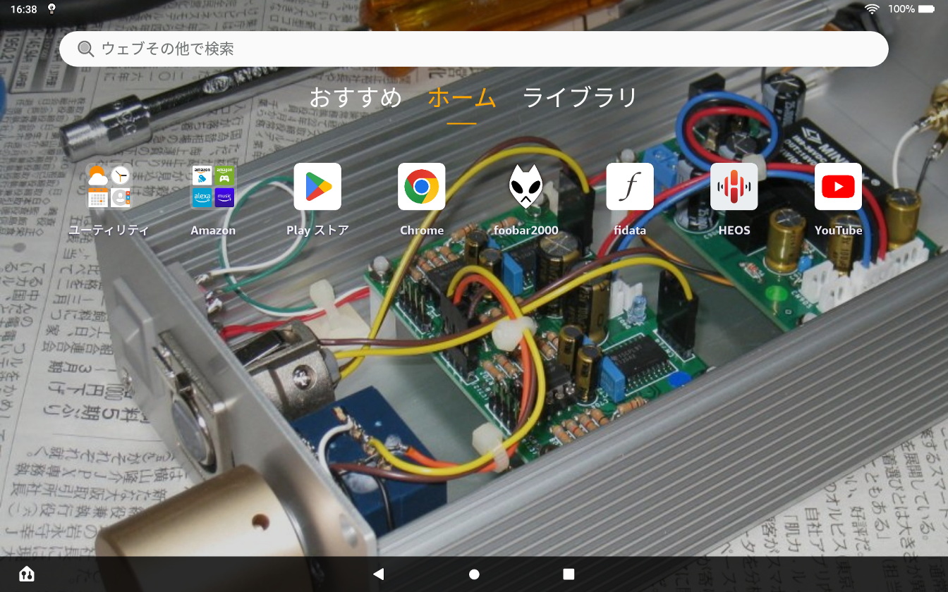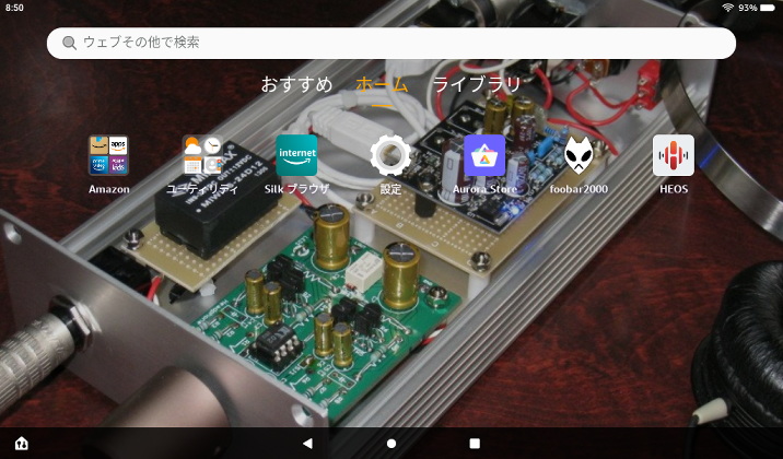 ネットでペンホルダを探していたら、ここに収納できることを知り一件落着。買ったタッチペンにもピッタリでした。 追加アプリとして「Androidの非表示の設定」と「Stay Awake」を入れて、画面ロックとスリープの無効化をしています。 Aurora Storeでも問題なくインストールできます。 Fire HD 10にはYouTubeも見るためアプリを入れてありますが、基本的にはネットワークオーディオ専用機(HEOS・fidata・foobar2000)です。 foobar2000は音出しの確認用で普段は使用していません。