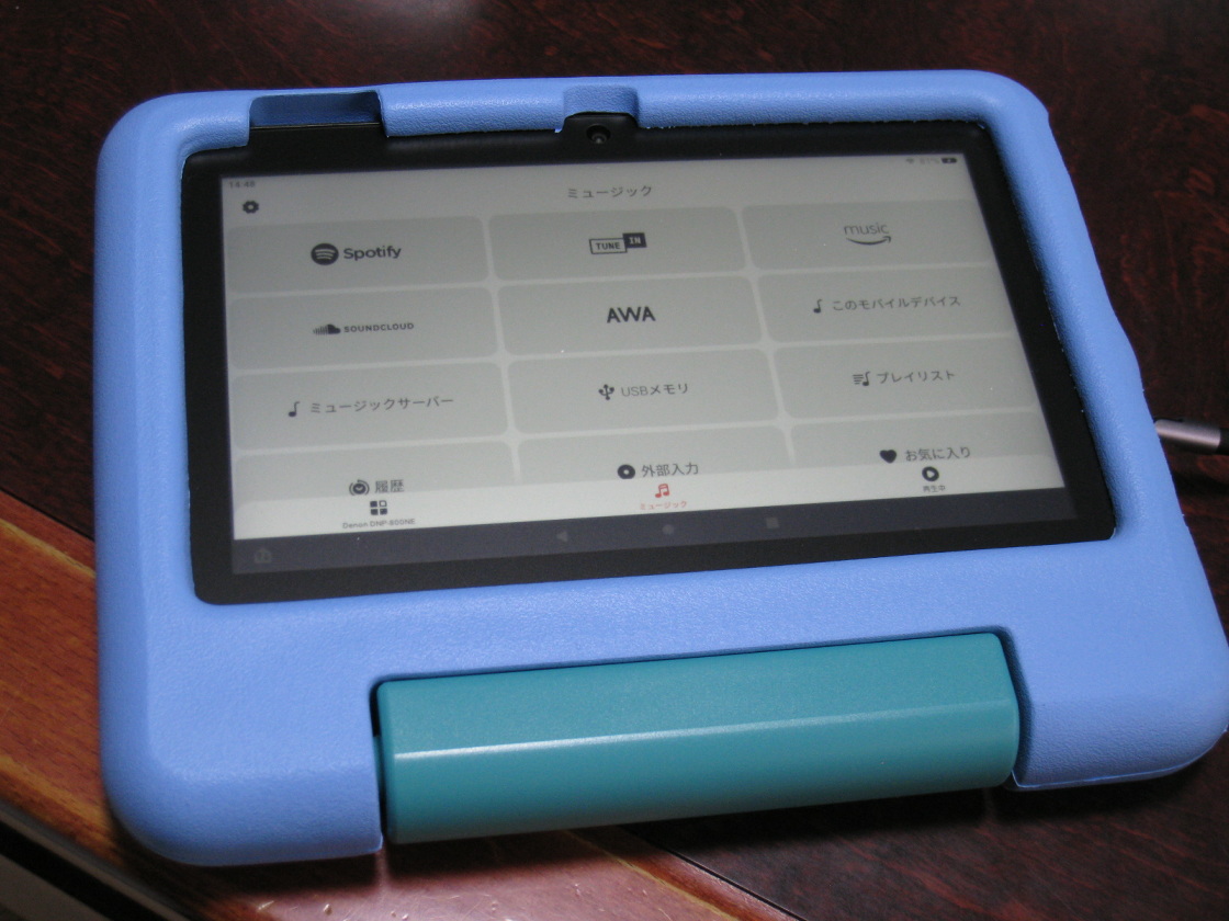 ネットワークオーディオプレーヤー(DENON DNP-800NE)の操作タブレットは、AmazonのFire HD 10を1年以上使っていて不便は感じていませんが、 もう少し小さいタブレットでも良いかなとAmazonを覗いていたら、最新(第12世代・2022年発売)のFire 7キッズモデルが−31%で売られていたので、 衝動的にカートに入れてしまいました。セールでない時よりトータル(保護フィルム込み)で1,000円弱しか下がりませんが、2年間の限定保障 付き(壊れることはないと思いますが)に釣られて買っちゃいました。キッズ用ですが、プロフィールを切り替えて通常のFireタブレットとして使えます。