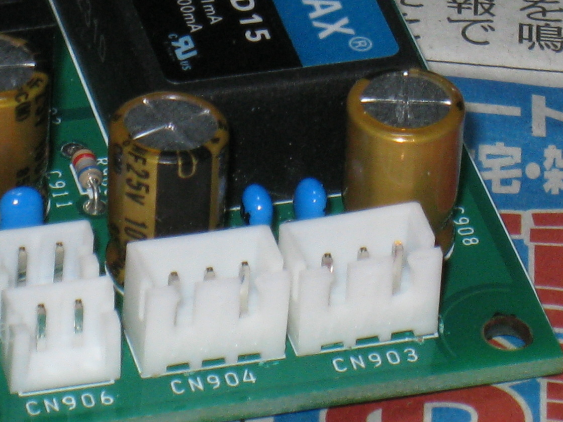 一気に電源基板周りまで製作。アンプ基板のコネクタと合わせるためにDCDC電源基板のコネクタをEH型からXH型に変更しました。左から右に交換。