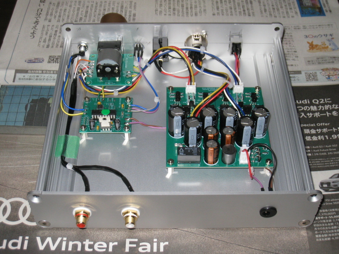ぺるけ式 FET差動バランス型ヘッドホンアンプ 2017年版 実装済み基板+アルプス電気 電動ボリュームの製作