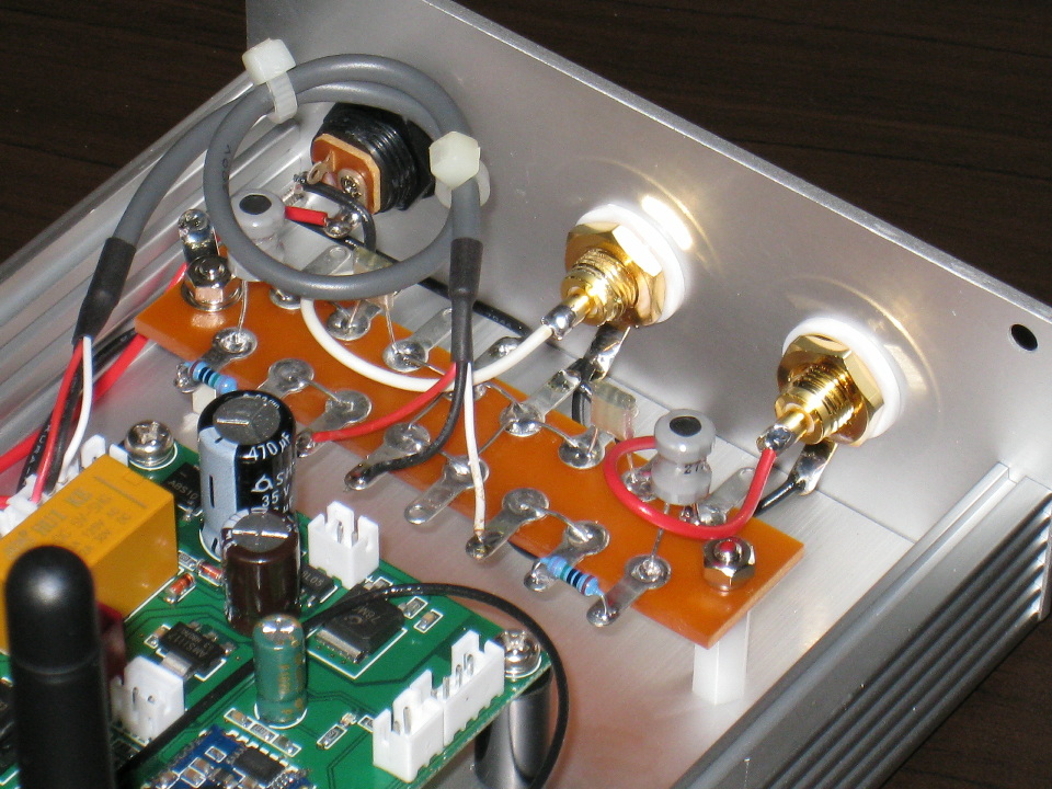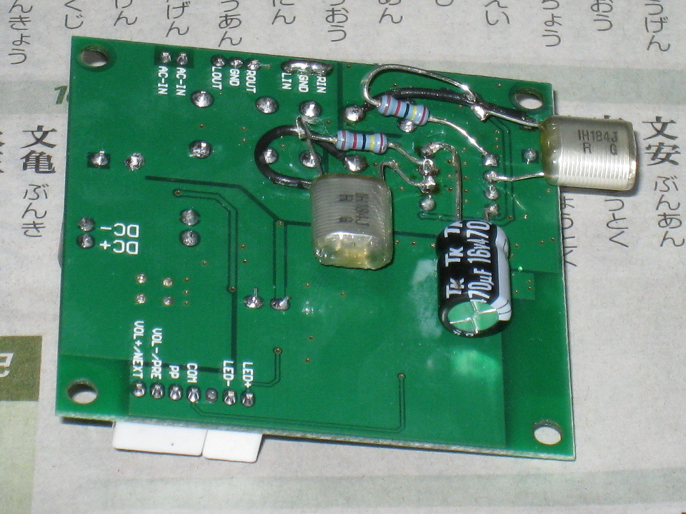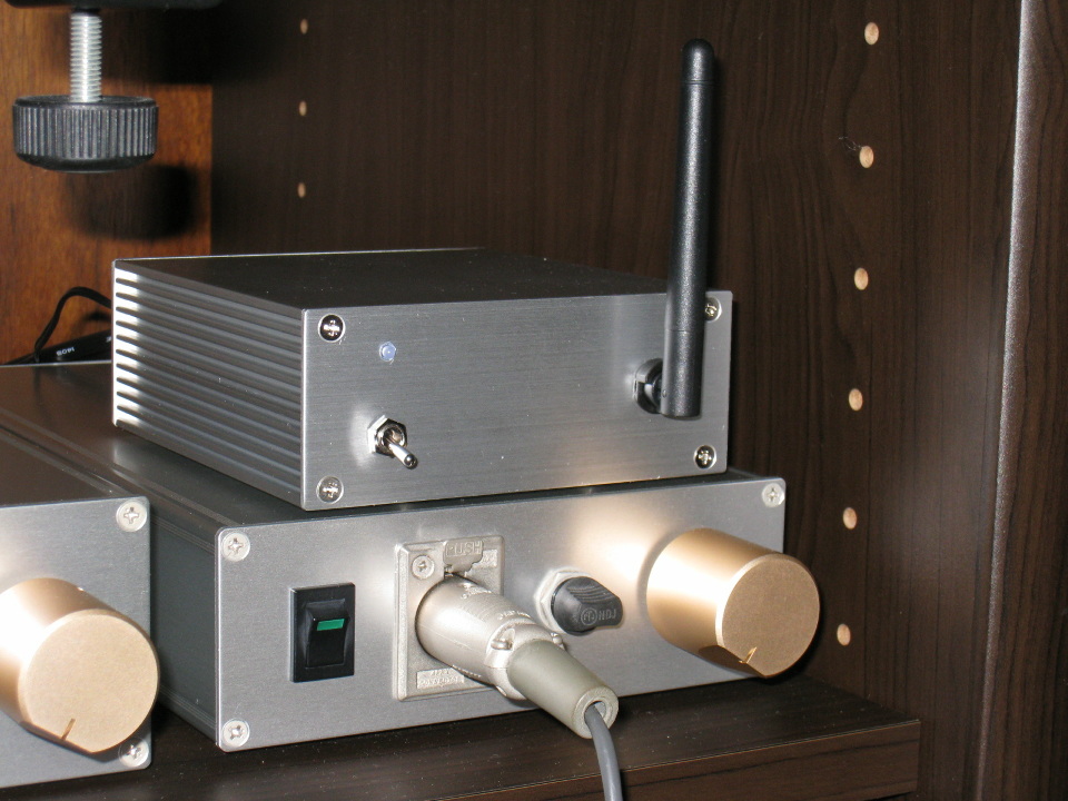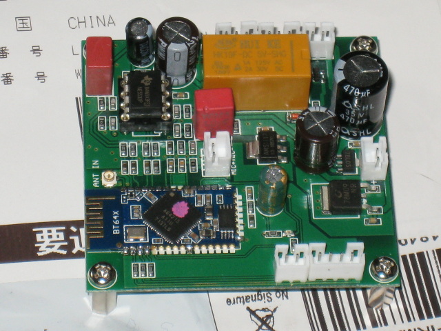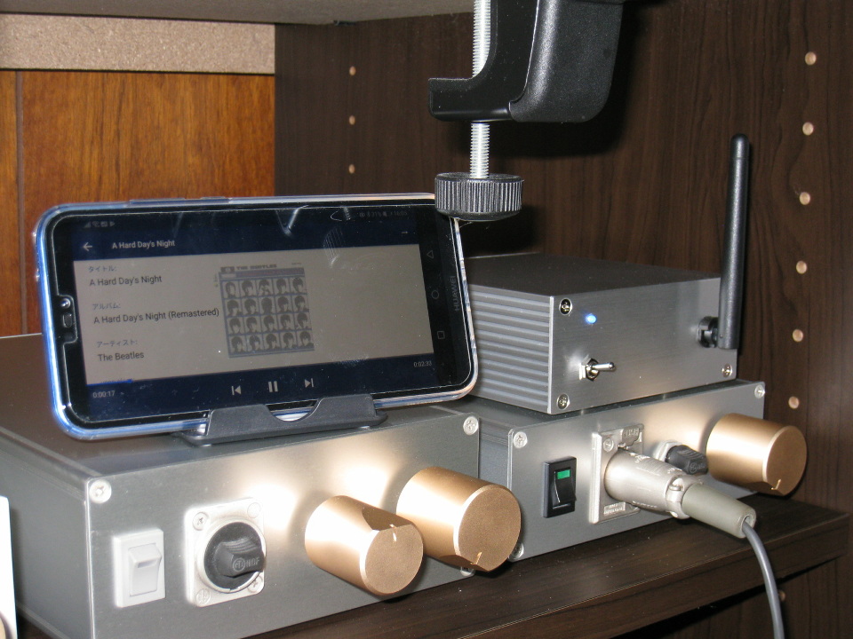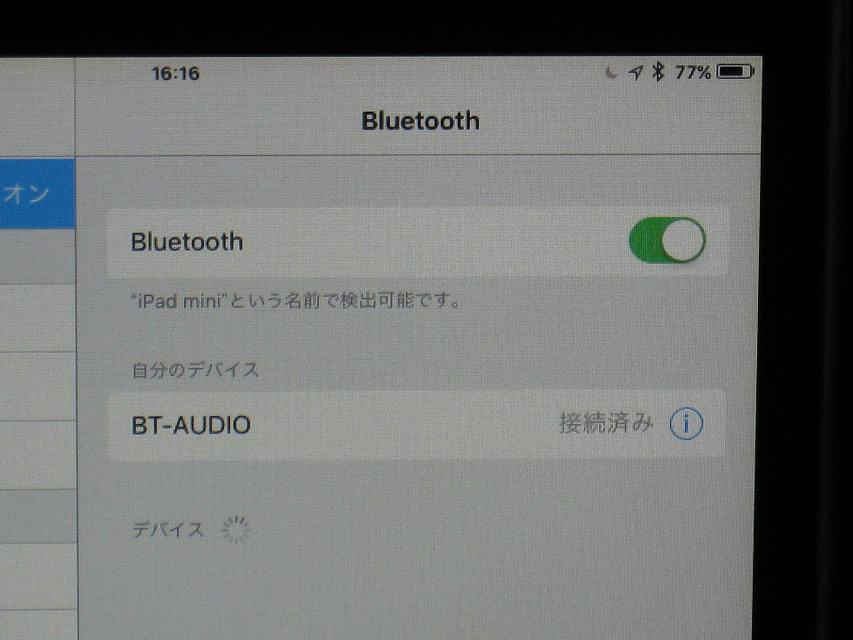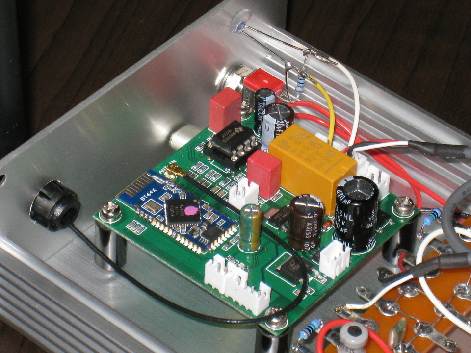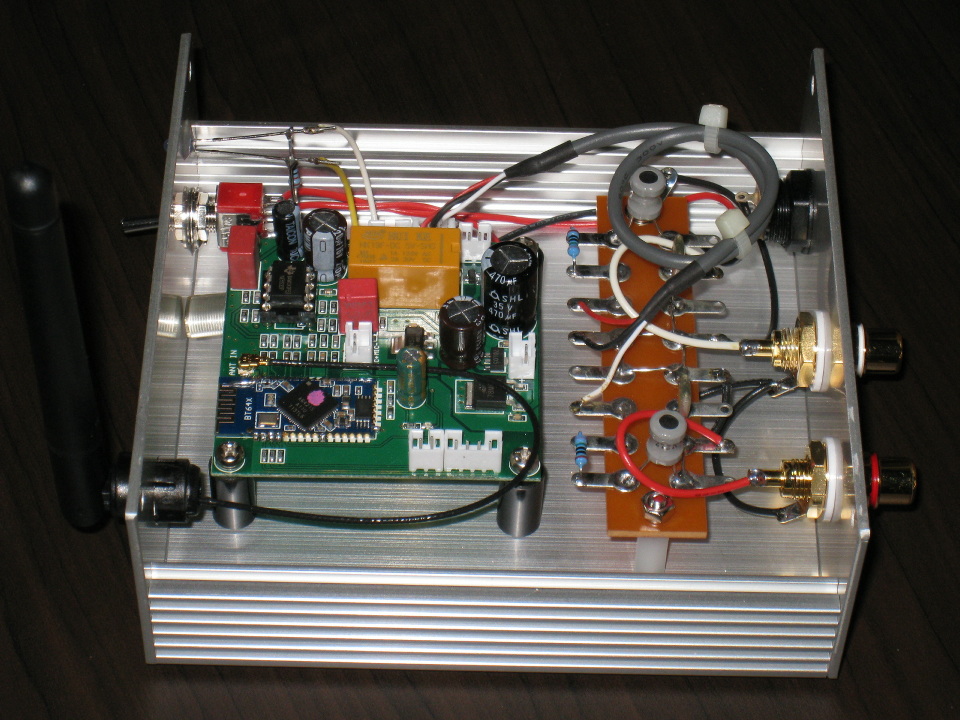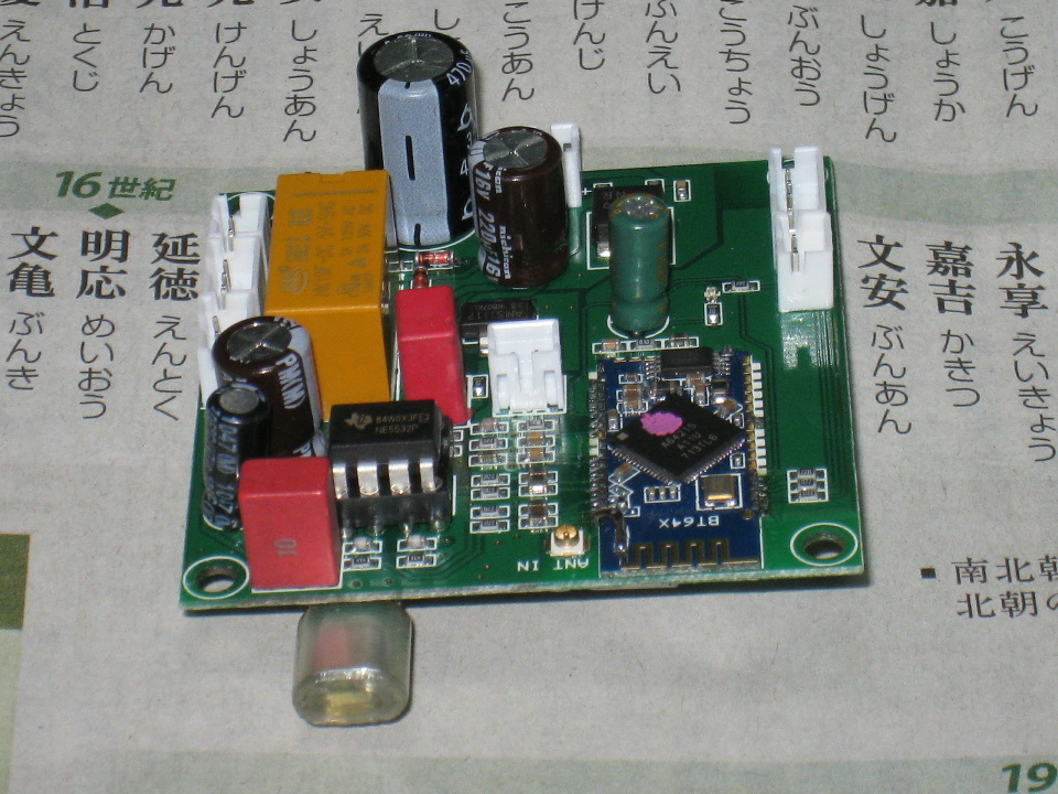 すべて組み終わったので、ACアダプター(12V)を繋いでLEDの点滅を確認、続いてiPad miniのBluetooth設定でBT-AUDIOを確認し問題なし。