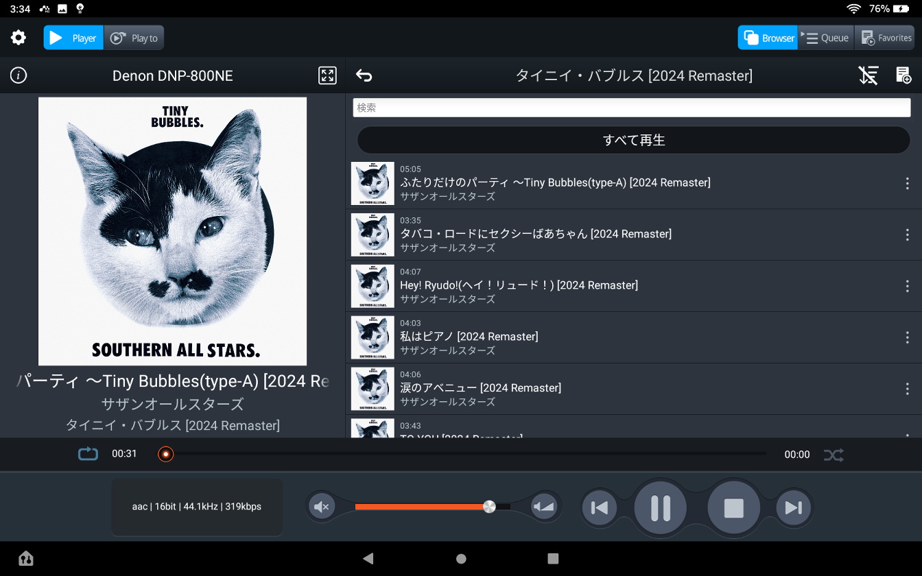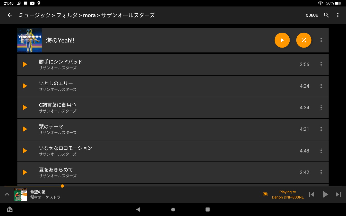 常用しているHEOSとかfiDATAがバージョンアップするたびに動作が不安定になってきたので、評判の良いmconnect Player HDをインストールしました。 ソフトは有料(Android版)で660円でしたが、クーポンがあり360円でゲット出来ました。Amazon Fire HD 10にインストール。(2025年6月18日導入) このソフトを導入する前は、アルバムアートワークが反映されないこともありましたが、これはすべて表示されます。