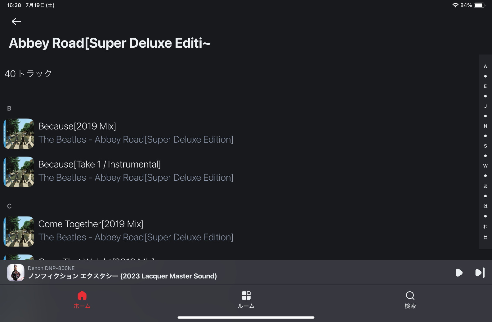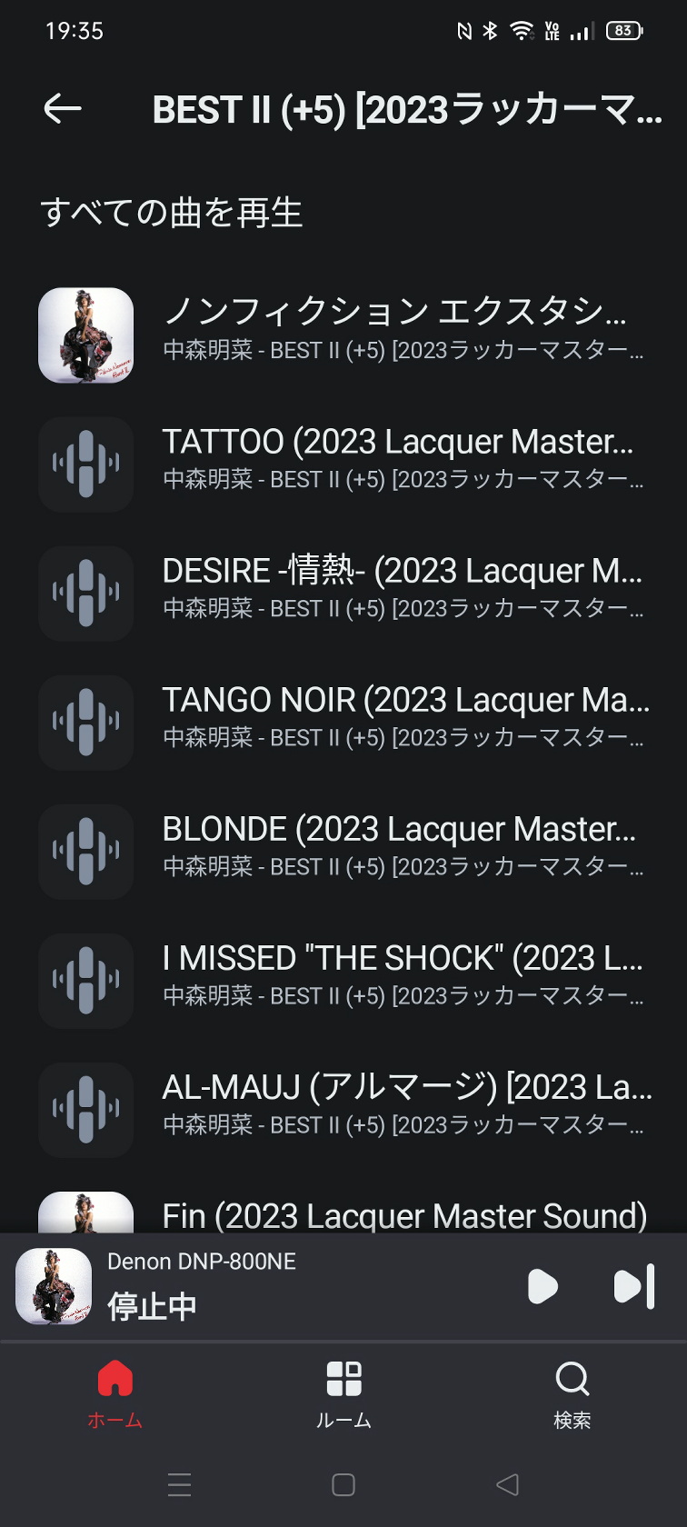 Amazon Fire HD 10(改造済み)ではこのよう(HEOS Ver3.67.460)になります。 どのアルバムを開いて同じです。昔のVerでは、すべて表示されたこともあったけど。 改善されるまで待ちます→でも、期待しない方が良いかも。