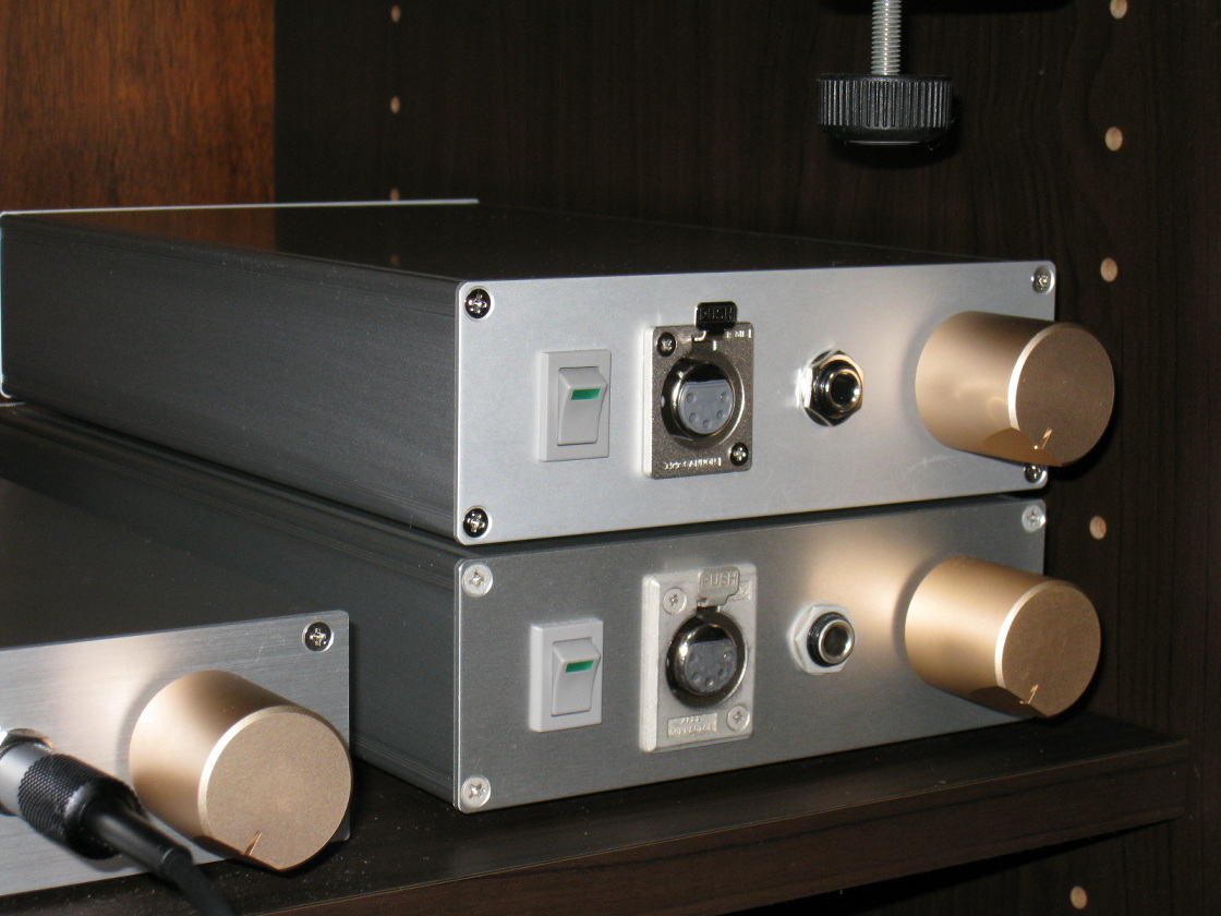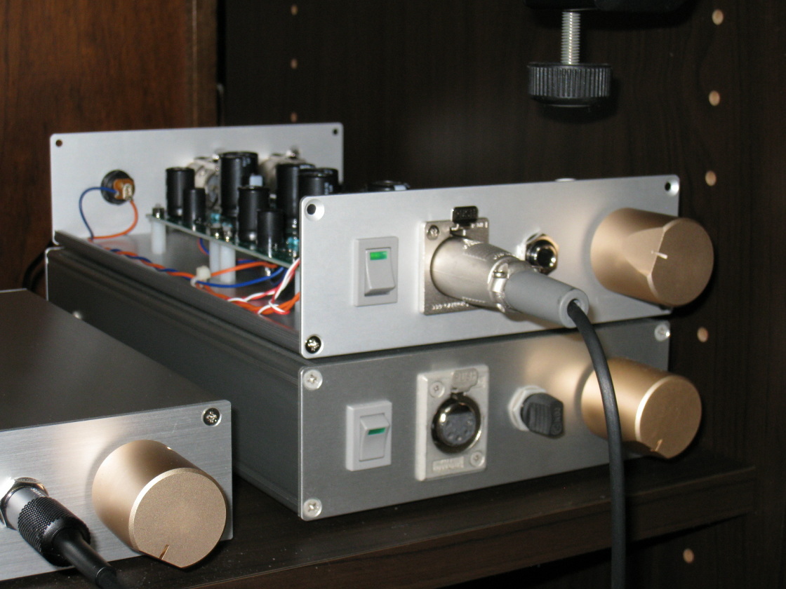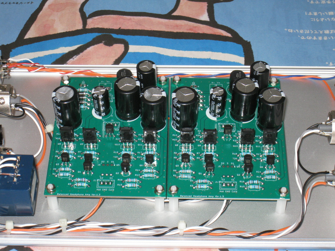 部品を同じ配置にした2台のバランス型ヘッドホンアンプです。下は