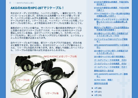 HPC-26Tヘッドホン用PCOCC-A平行ケーブルを使ってAKG K404を平衡型ヘッドホンに改造