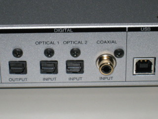 入力もUSB・同軸デジタル・光デジタル・アナログと豊富なうえ、出力も光デジタルとアナログを備えている。