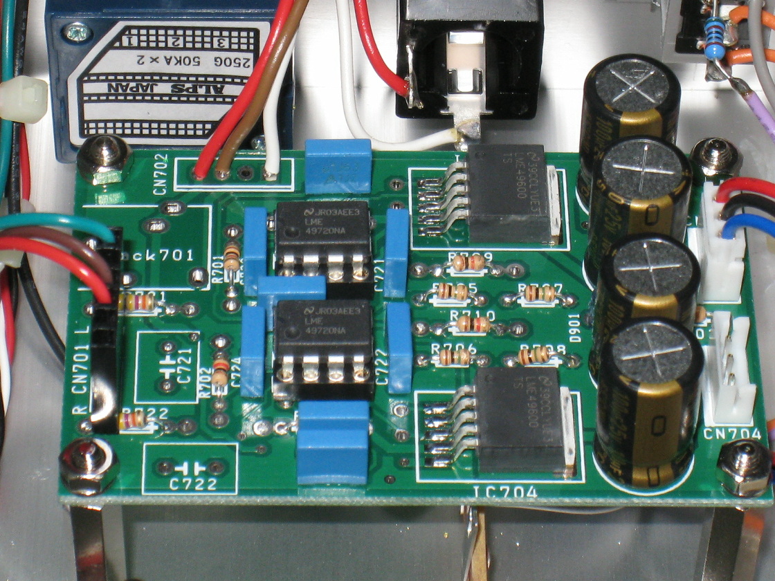 オペアンプは付属のNJM4558からOPA2134PAに変更。最初はLME49720を挿していたがノイズが発生し取り外し。