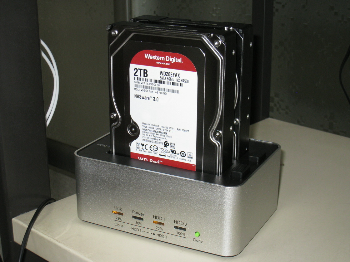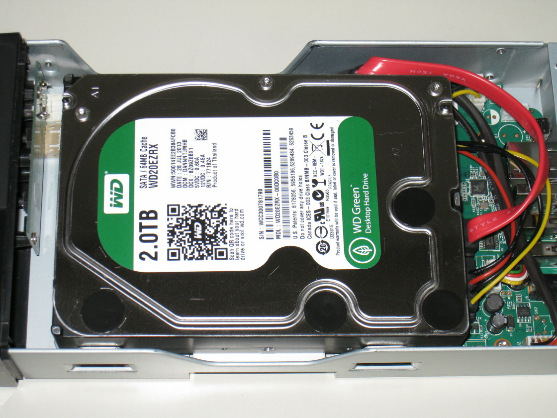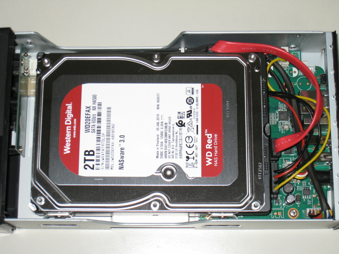 左のWD Green 3.5inch IntelliPower 2.0TBから、右のWD NAS用 3.5インチ Red 2TB WD20EFAX-RTに交換しました。(2019年7月31日購入)
