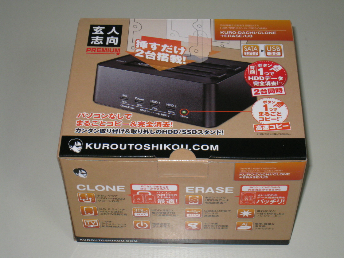 HDD・SSDのデータ消去もあり、玄人志向のHDD/SSDスタンド KURO-DACHI/CLONE+ERASE/U3を購入しました。(2019年8月2日購入・2020年10月25日売却)