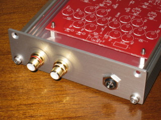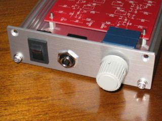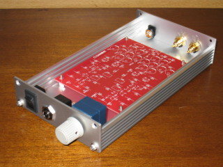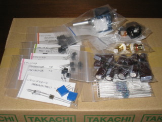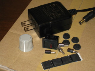 こちらで用意したものはケース(タカチHEN110320S)・電源スイッチ・ツマミ・スペーサ・ACアダプターのみです。