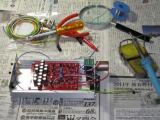 CQ版 理解しながら作るヘッドホン・アンプ(木村 哲著)2作目の製作100V用で作る予定が、CQ版のバランス型ヘッドホンアンプと大きさを合わせたかったので12V用として製作。この基板を使っての製作は2作目のためトラブルなしで完成。ミスのしようがありませんけど。