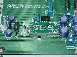ラインアウトにはコネクタが付いていませんので取り付けて下さい。また、このコネクタの上に抵抗(50Ω)