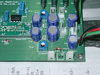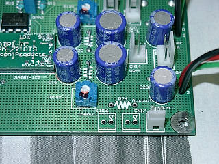 Iout CN2とIin CN3、Iout CN12とIin CN13のジャンパー線を外しコネクタを取り付け。ここが電流入力端子です。