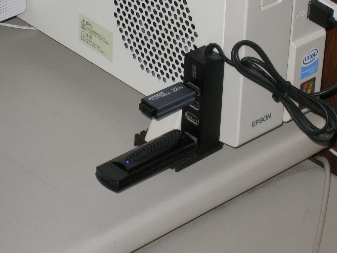 マシンの後に斜めになっている黒いものは無線子機です。フレキシブルUSBケーブルに無線子機を挿しているのでこのようになってます。