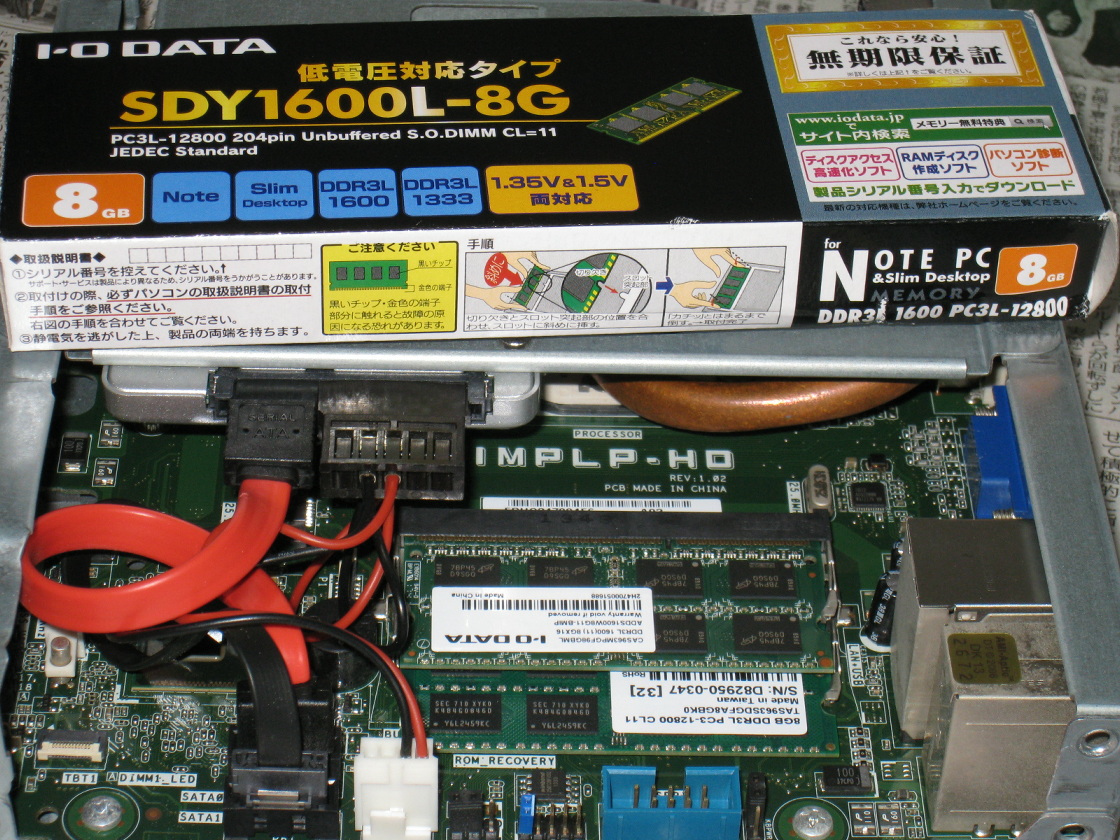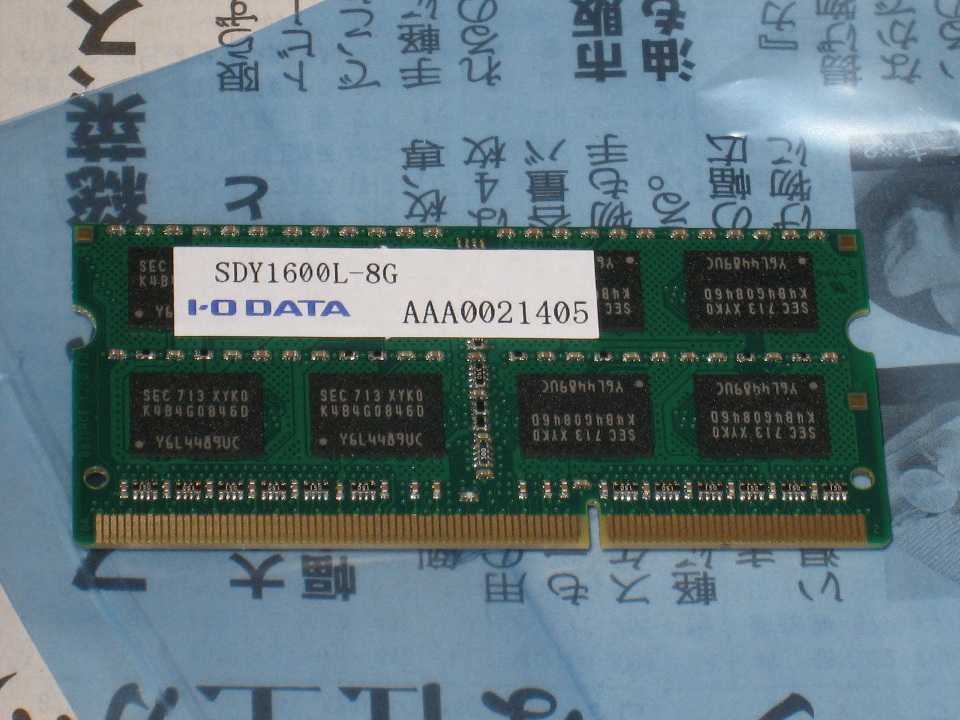 交換したのはアイ・オー・データのSDY1600L-8Gです。左が交換前の2G、右が交換後の8Gです。